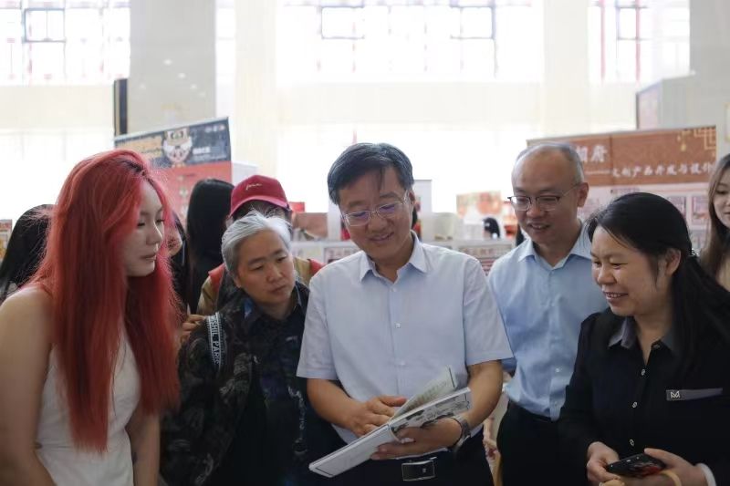 领导和老师的陪同下,对学生的毕业设计作品进行了参观,毕业生结合自己的作品进行了阐述,张校长对作品所展现出的创意与品质给予了高度的肯定与赞扬。