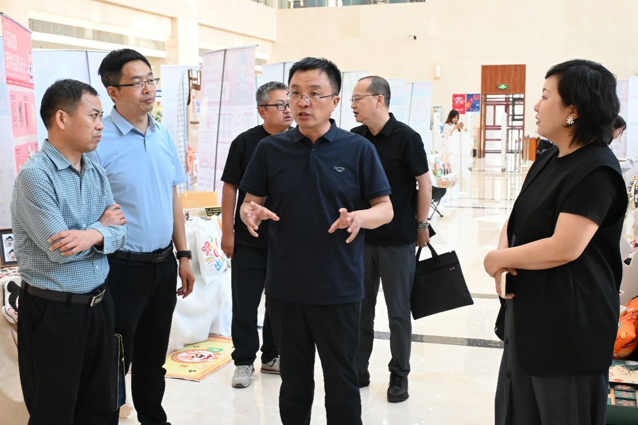 领导的陪同下,饶有兴趣地对学生的毕业设计作品进行了参观,寇书记对学生设计作品所展现出的创意与品质给予了高度的肯定与赞扬,同时对视觉传达设计专业的未来发展的也给出了积极的意见。